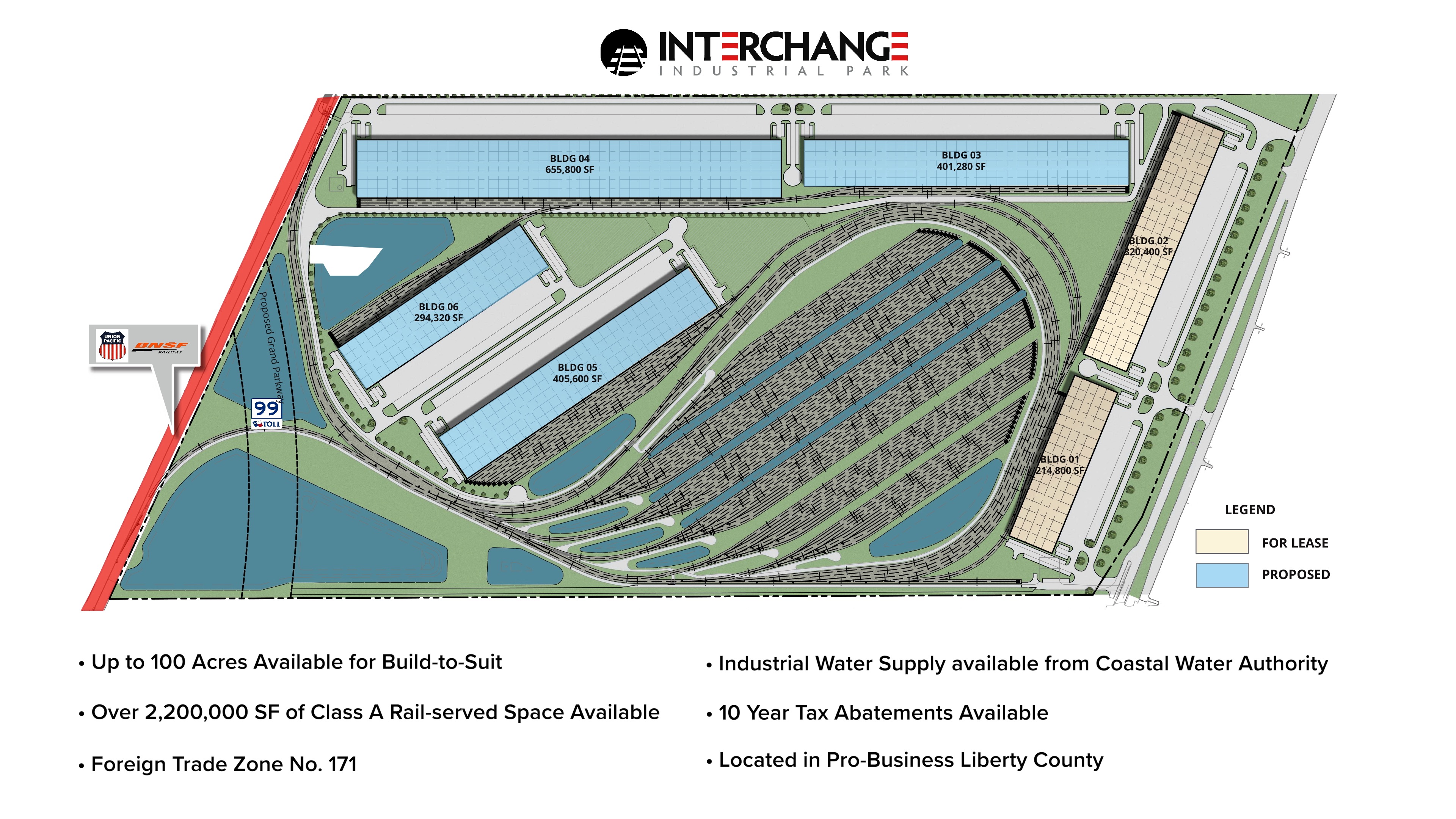 A Rail Logix and National Property Holding Development the state-of-the-art Interchange Industrial Park will accommodate 1,060 Rail Cars (expandable to 3,400+) with 272 Rail Car Spots of Interchange Track.